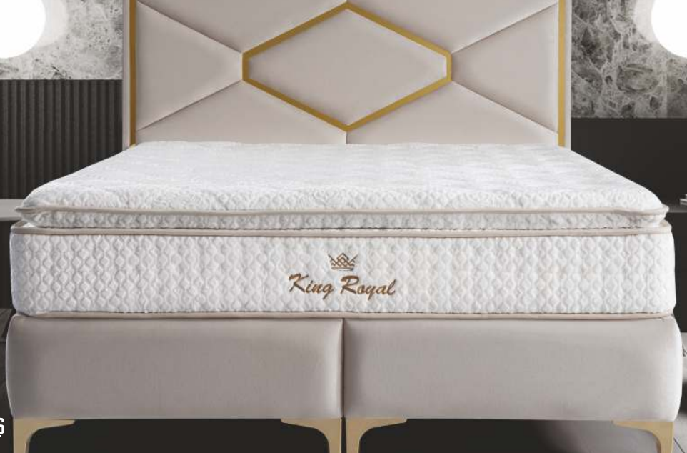 King Royal, Herkül Yay Sistemi ile güçlendirilmiş altyapısını; tavşan tüyü dokusundaki ultra yumuşak peluş kumaş, 32 DNS yoğunluğa sahip yüksek dirençli sünger ve kuş tüyü ped teknolojisiyle birleştirerek üst sınıf uyku konforunu yeniden tanımlar.