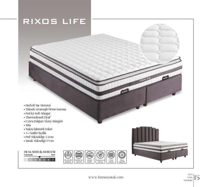 Otel ve kurumsal projeler için özel olarak tasarlanan Rixos Pedli Yatak, yoğun kullanıma uygun yapısı ve artırılmış konfor seviyesiyle misafir memnuniyetini üst düzeye taşır. Dayanıklılık ve estetiği bir arada sunan yapısı, işletmelere uzun vadeli ve güvenilir bir çözüm sağlar.